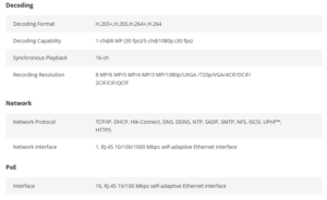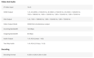 – Up to 1-ch @ 8MP or 5-ch @ 1080P decoding capacity