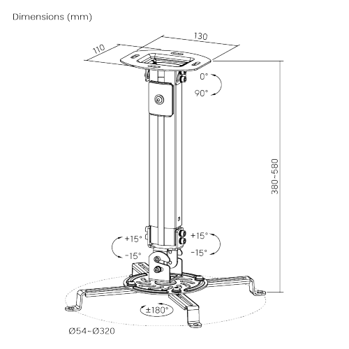 | Mounting Range: | 54~320mm (2.1″~12.6″) |